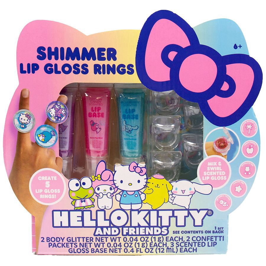 Design 5 of your own Shimmer Lip Gloss Rings with Hello Kitty & Friends! Complete with 5 rings, 3 scent-sational lip gloss flavors, confetti, body glitter, and exciting stickers, this DIY beauty kit b…