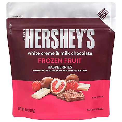 Introducing HERSHEY'S Frozen Raspberries in White Creme & Milk Chocolate — a delightful fusion of juicy raspberries and creamy chocolate in every delectable bite. Enveloped in white creme and dipped i…
