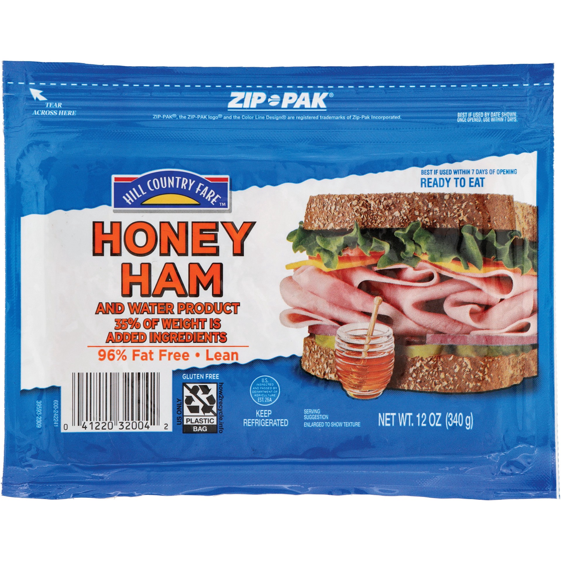 Savor the subtly sweet taste of Hill Country Fare honey ham. Great for making sandwiches or arranging on a meat and cheese tray, this deli meat comes in a resealable package to help maximize freshness…
