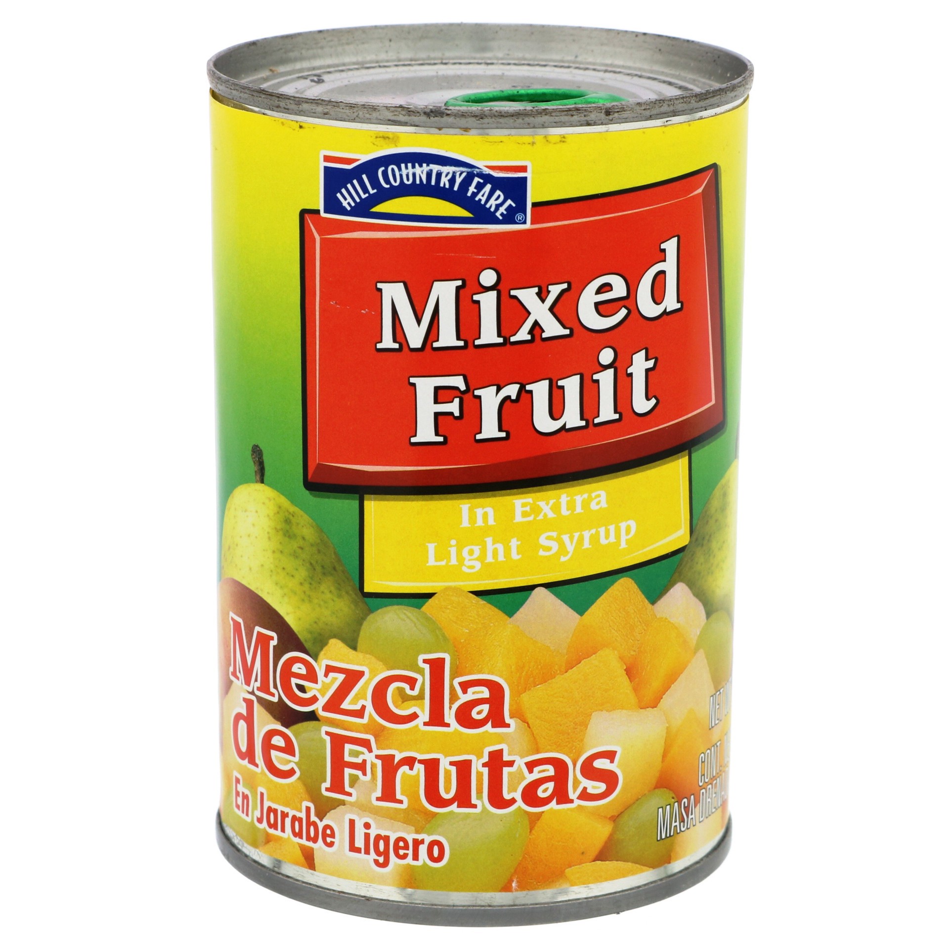 A medley of diced peaches, pears and grapes, Hill Country Fare Mixed Fruit is a great fat-free snack or dessert option. Packed in extra-light syrup, it's an easy way to enjoy your favorite fruits any …
