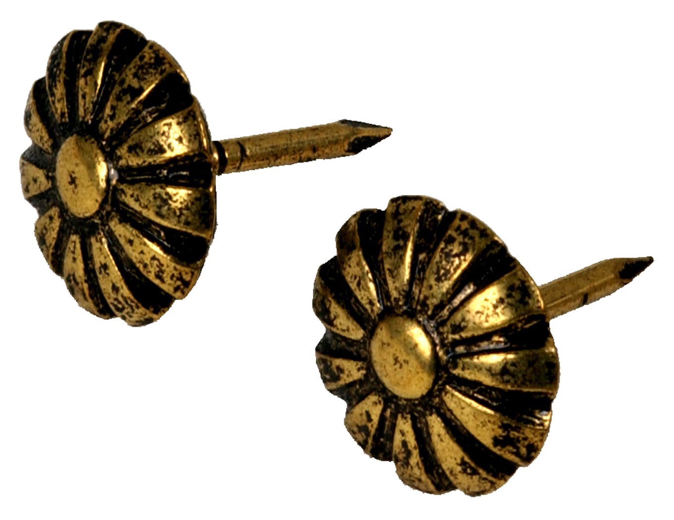 Used to attach upholstery material to a framework. Great for DIY upholstery projects. Brass-plated antique daisy head. 16-gauge.