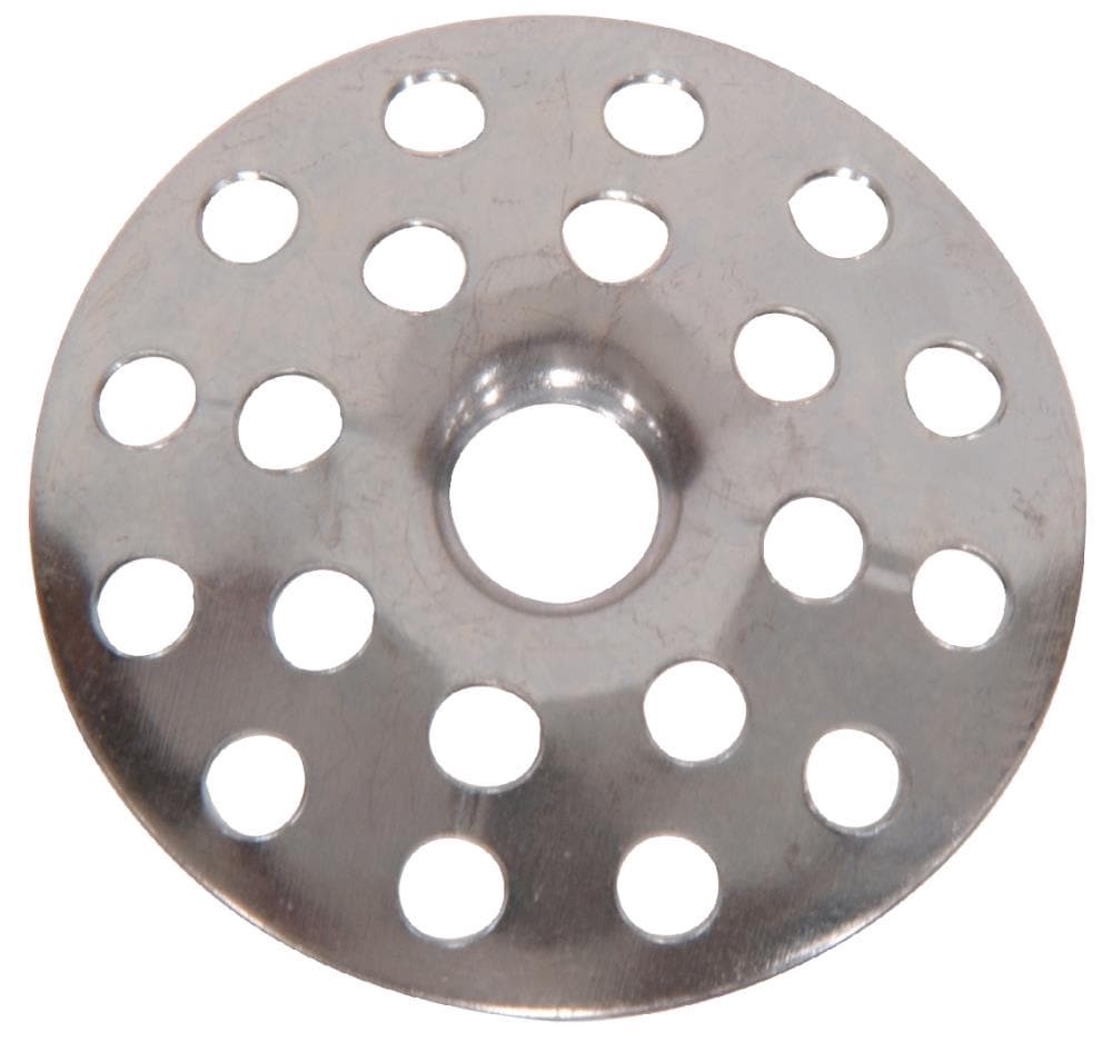 Use to hold sagging ceilings. Countersunk washer made of steel. 1 inch diameter. Zinc finish offers moderate corrosion resistance.
