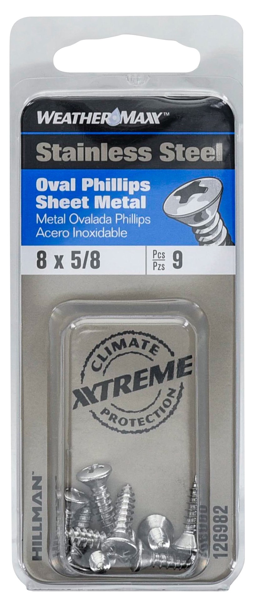 #8 screw size x 5/8-in length. Designed for joining metal objects, and attaching metal to wood, fiberglass, and plastic. Sharp threads ensure a secure hold in material. Stainless steel finish combines…
