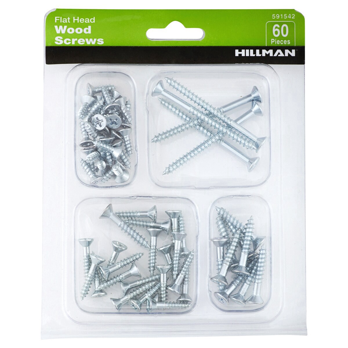 slide 1 of 1, Hillman Flat Head Wood Screws, 60 ct