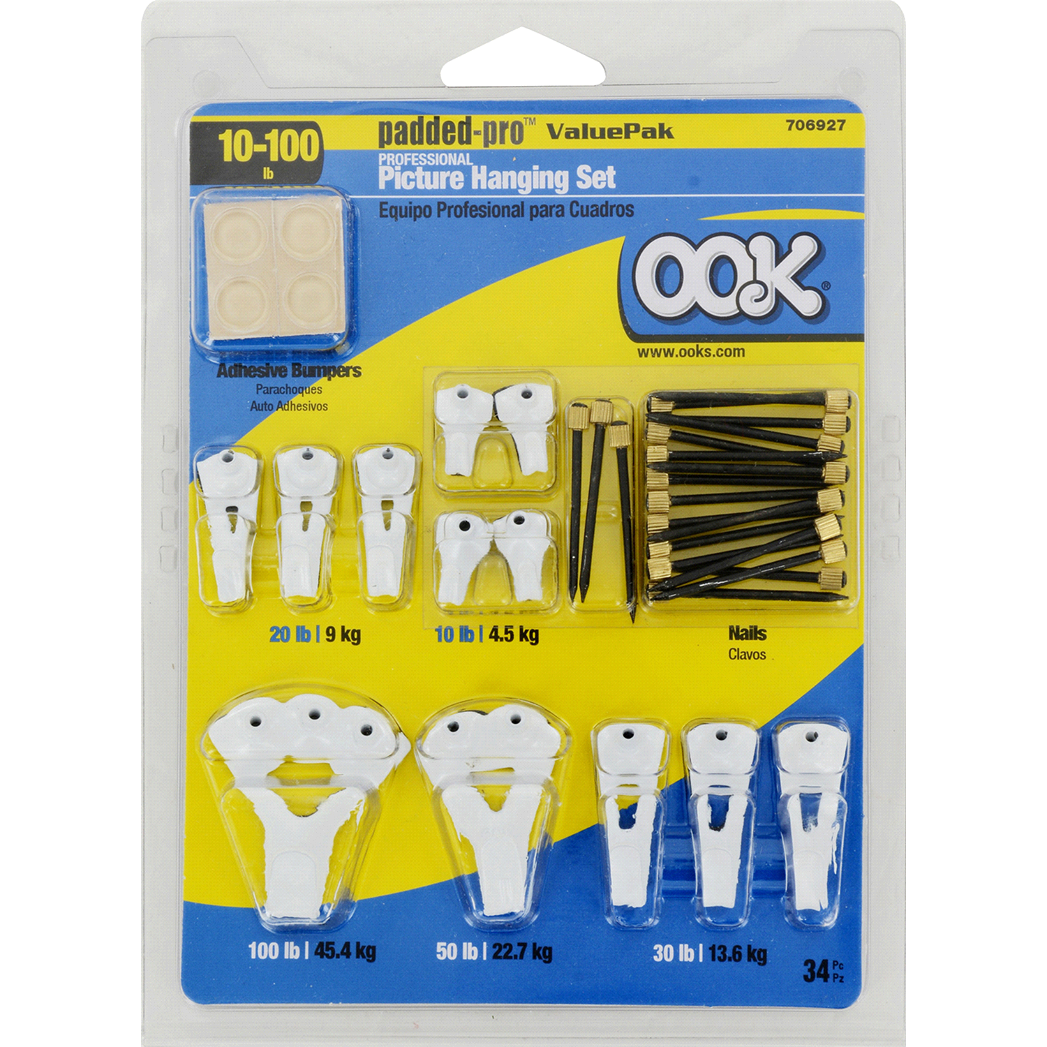 OOK Padded-Pro picture hangers are useful for home, office, or anywhere you want to hang artwork or pictures professionally. Hangers have a padded back to prevent wall scratches.