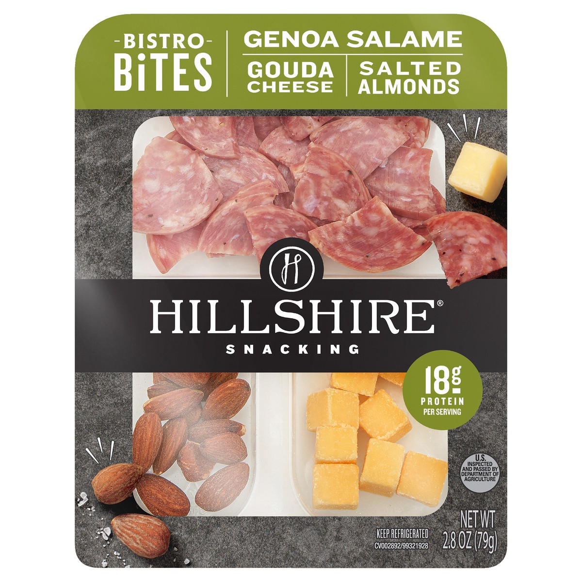 Enjoy a grown up take on snack time with Hillshire Snacking Bistro Bites Genoa Salame Gouda Cheese and Salted Almonds. With this fancy snack pack, complementary flavors come together to deliver a gour…