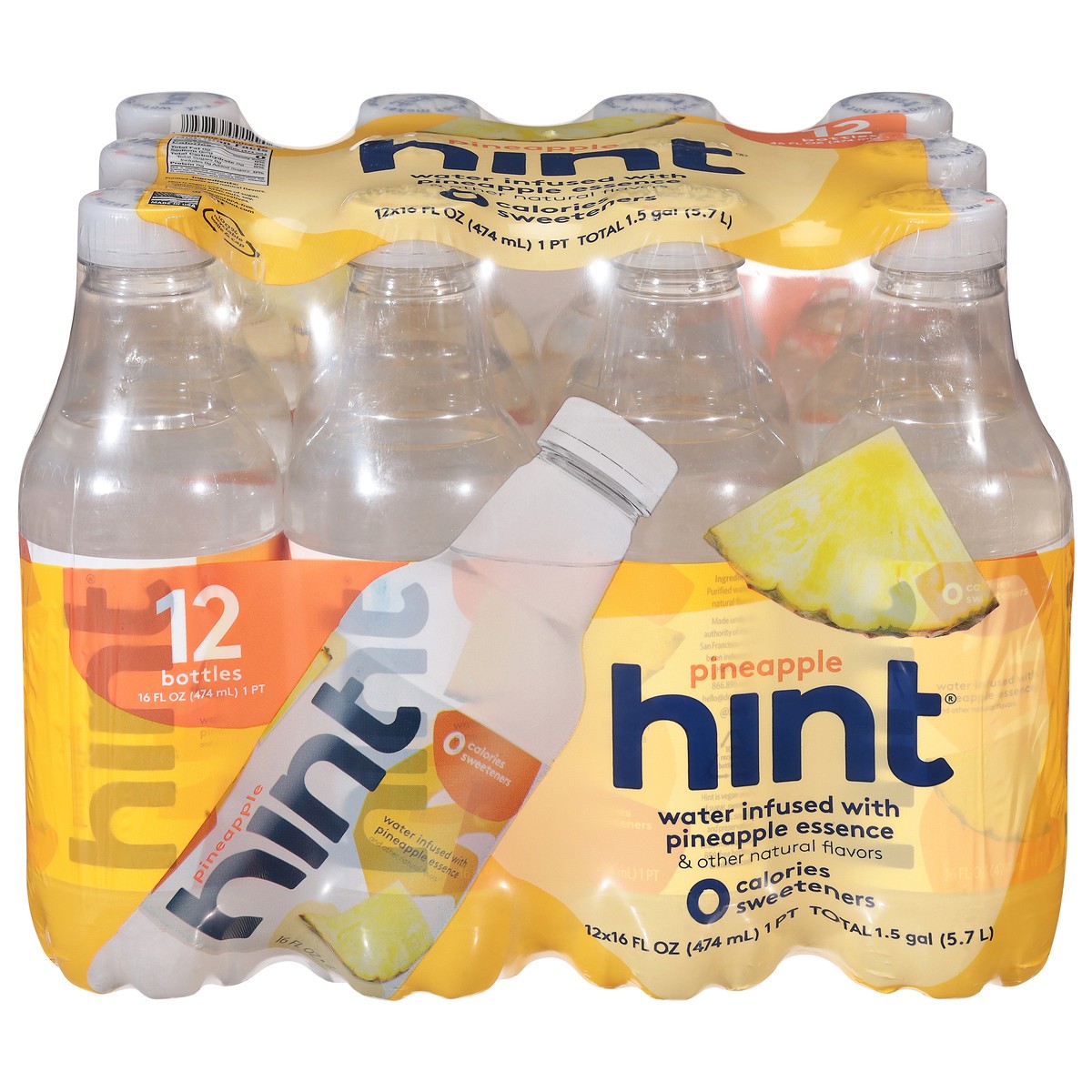 Water infused with pineapple essence and other natural flavors. 0 calories. 0 sweeteners. Contains no juice. Non GMO: Certified by NSF. Drink water, not sugar. Hint is a vegan and free of sugar, sweet…