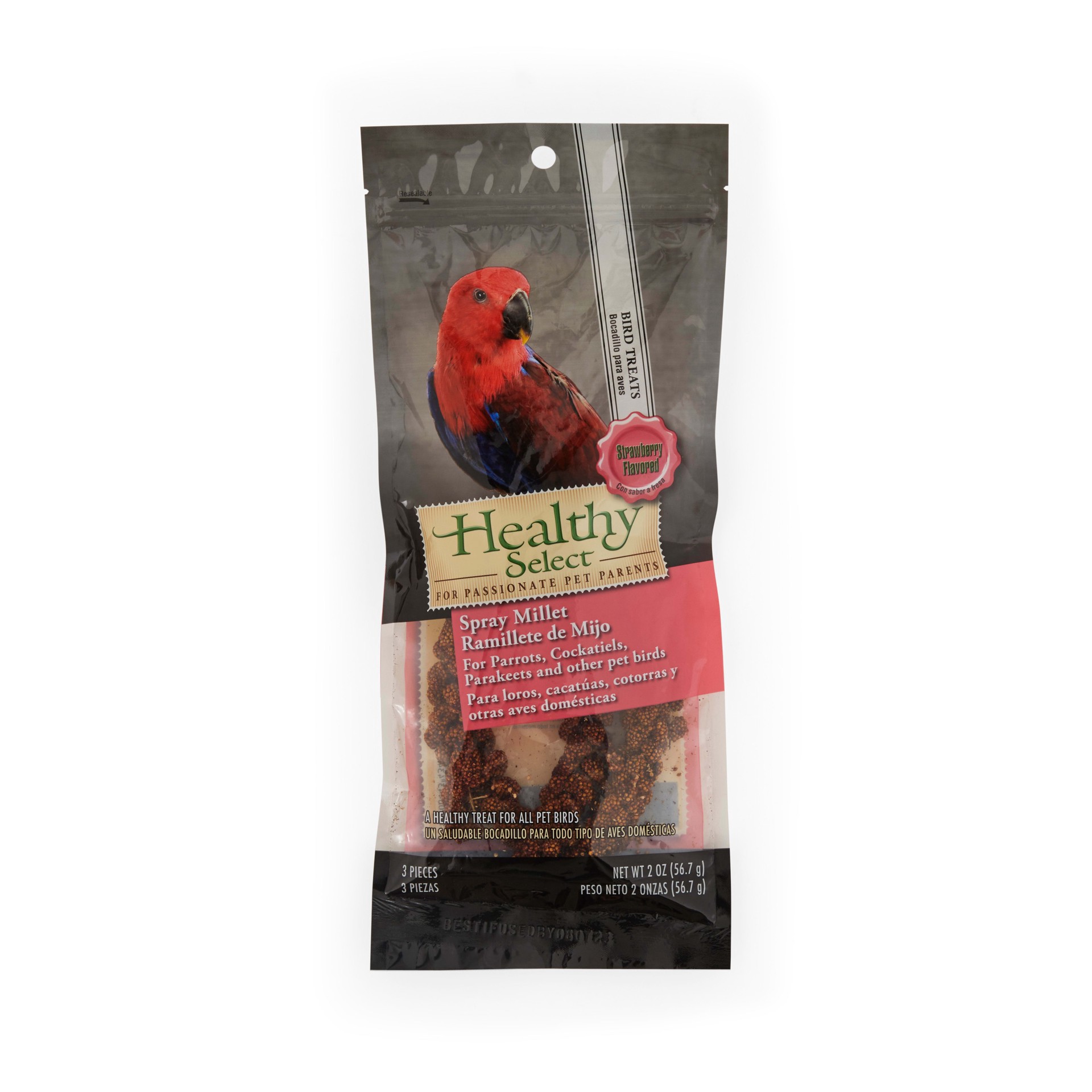 The Healthy Select Strawberry-Flavored Spray Millet for Birds treats them to a healthy snack packed with delicious flavor. It's perfect for parrots, cockatiels, parakeets, and other feathered friends.