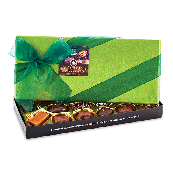 slide 1 of 1, Holiday Asst Chocolate Green Paper Box, 8 oz