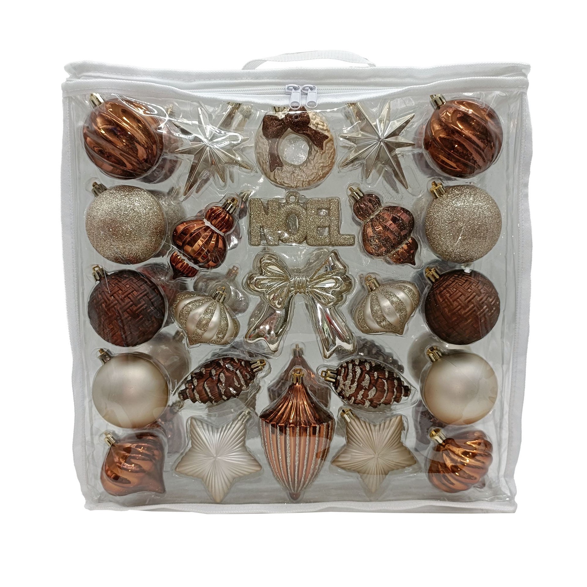 48 mixed balls, icons and shapes. Champage and Brown coordinating styles. Shatterproof ornaments for safe and easy decorating. Easy and economical way to enhance or change decor. Can be used on trees,…