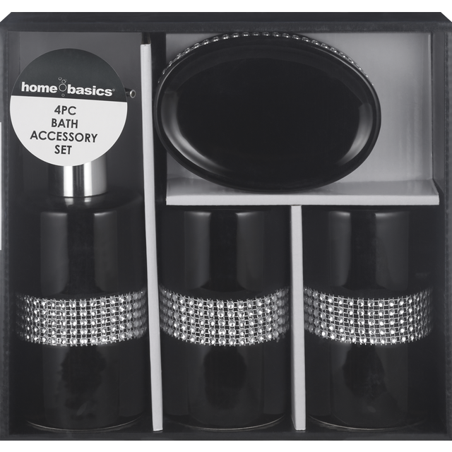 Home Basics 4-Piece Bath Set, Black Sequin