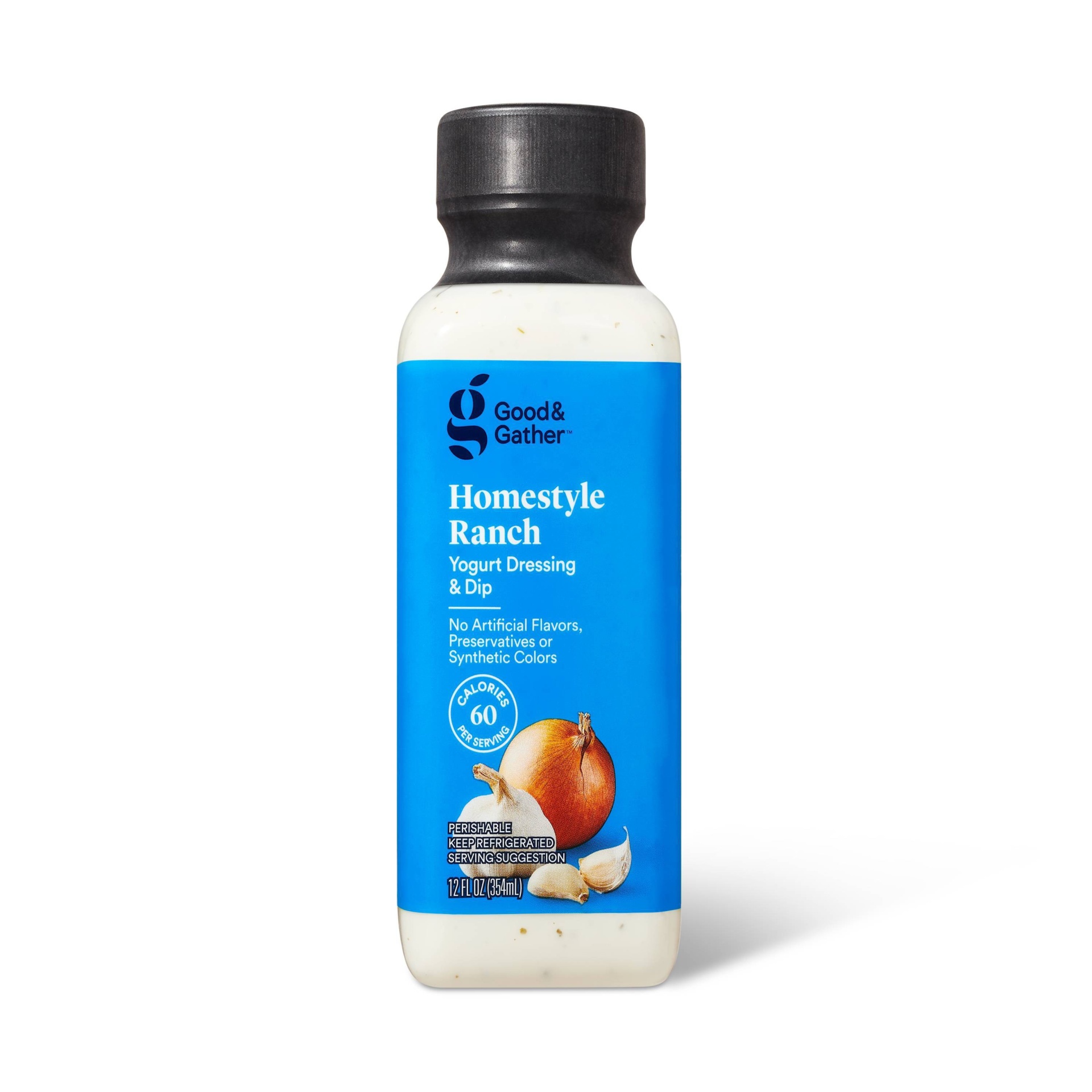 Keep things classic when it comes to dressing up salads, sandwiches and veggie spreads with Homestyle Ranch Yogurt Dressing & Dip from Good & Gather. This yogurt-based dressing features a smooth and c…