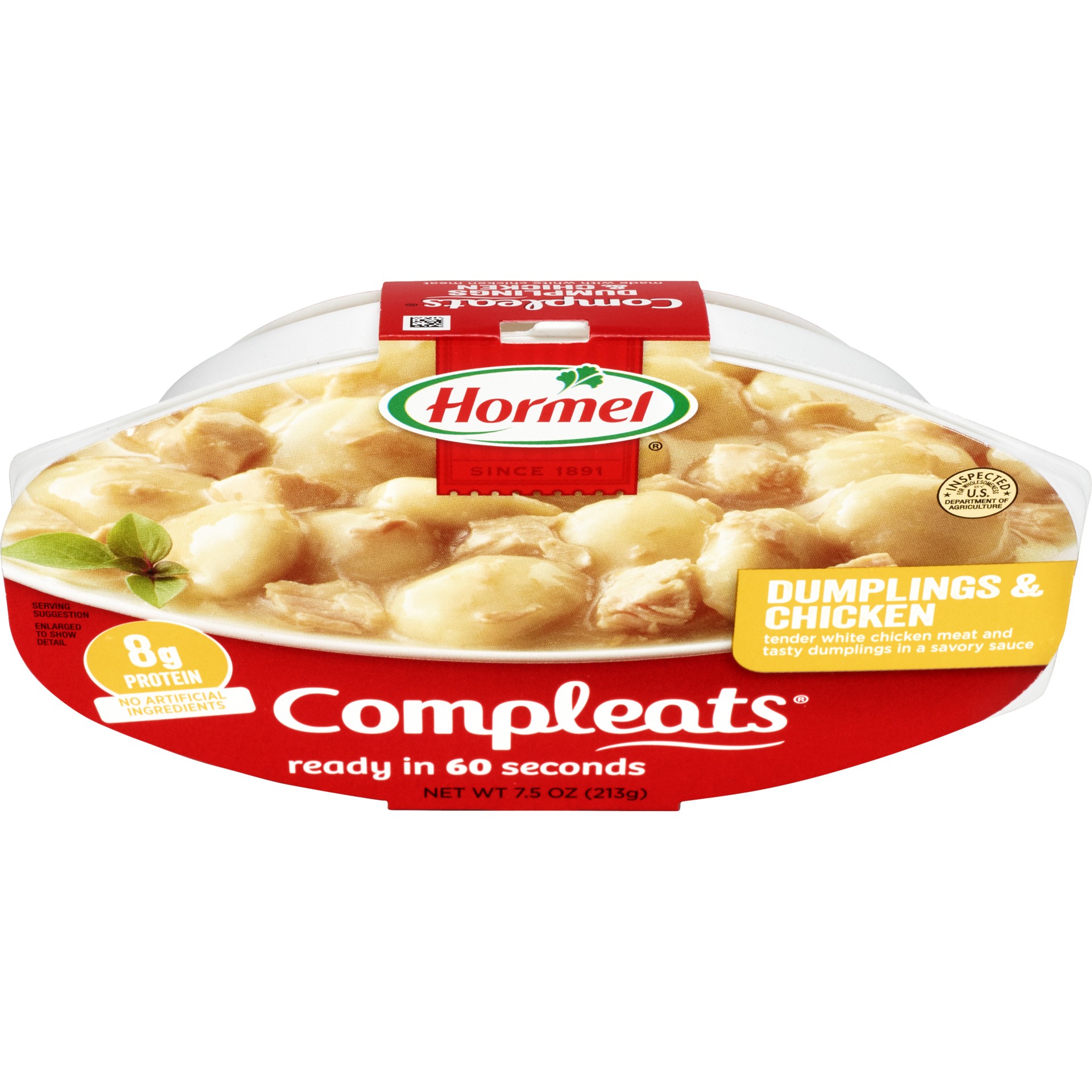 Tender white chicken meat and tasty dumplings in a savory sauce. 8 g protein. No artificial ingredients. Made with white chicken. Ready in 60 seconds. Since 1891. Inspected for wholesomeness by US Dep…