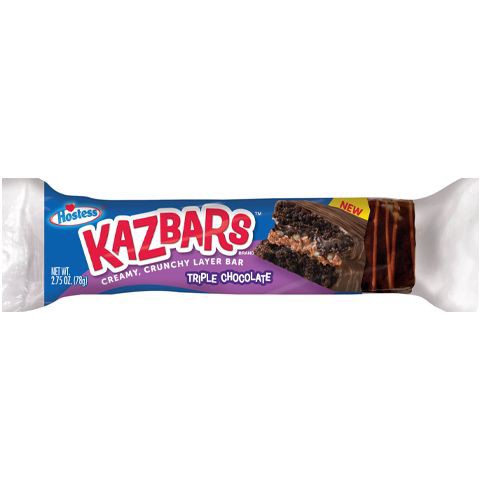 6 layers that include soft moist cake, Hostess crème filling, sweet crunch, Ooey, gooey caramel or chocolate fudge and dipped in a fudgy coating and topped with a delightful drizzle