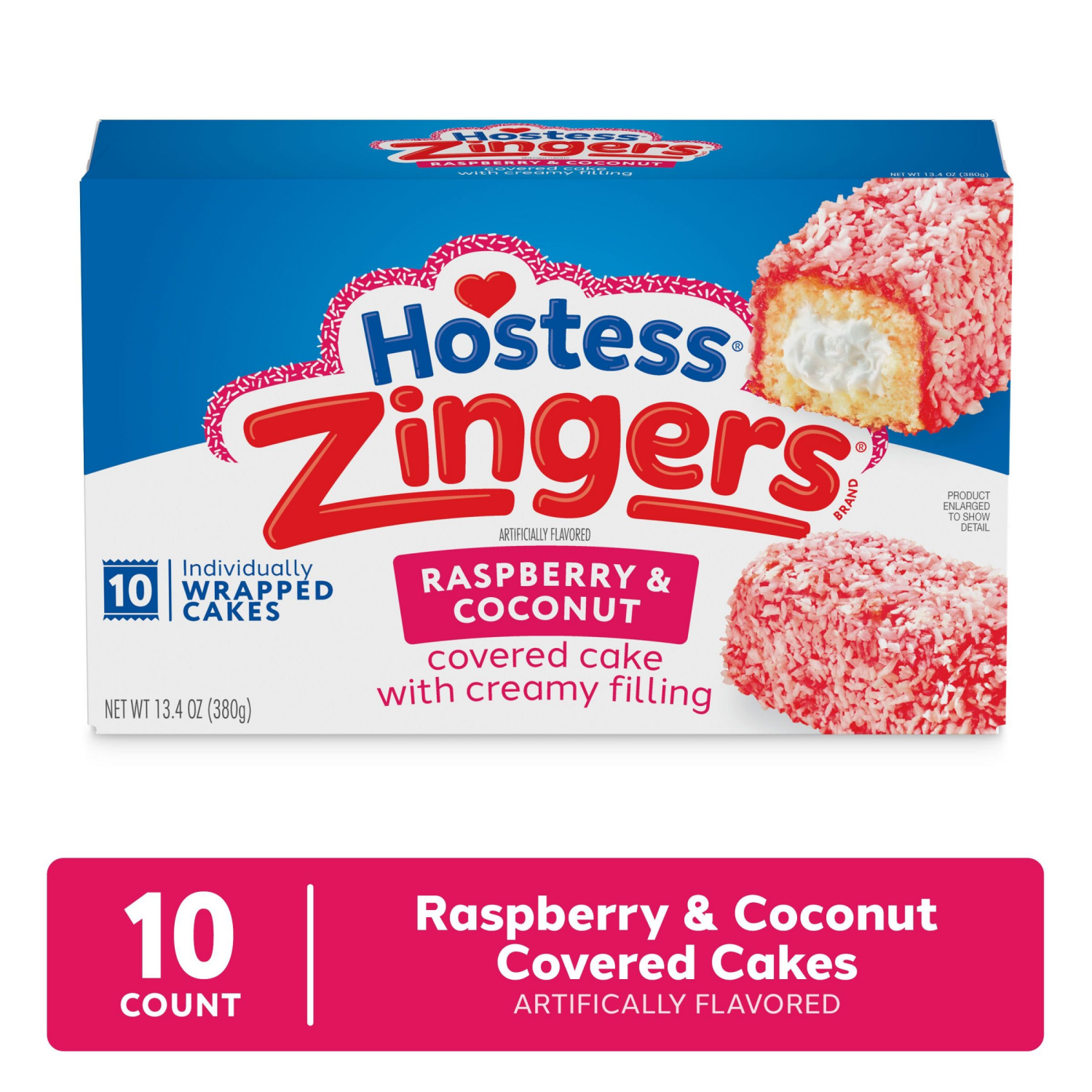 Hostess Zingers Snack Cakes, Raspberry Artificially Flavored Cake, 13.4 Oz. Box (10 Snack Cakes)