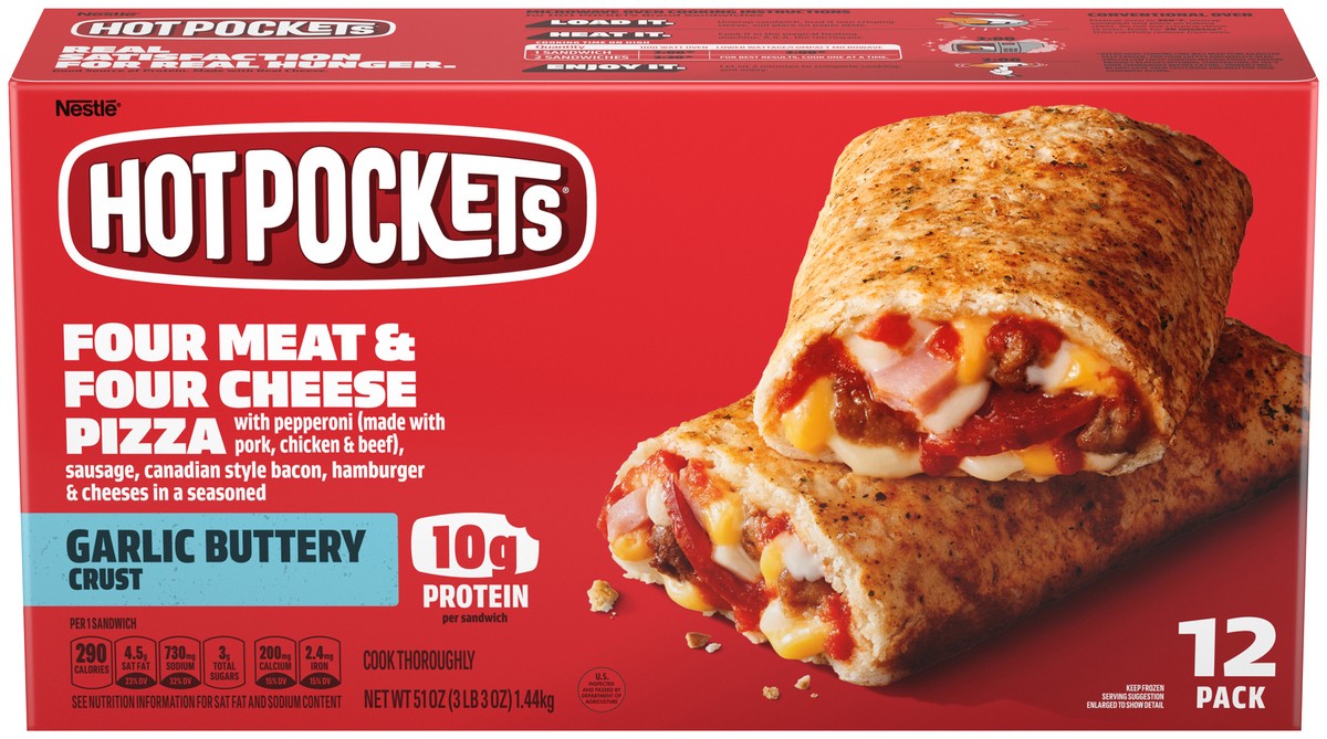 Hot Pockets Four Meat & Four Cheese Pizza Garlic Buttery Crust Frozen Snacks 54 oz.
