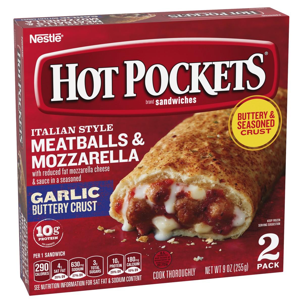 Hot Pockets Italian Style Meatballs & Mozzarella Garlic Buttery Crust Frozen Snacks 9 oz.