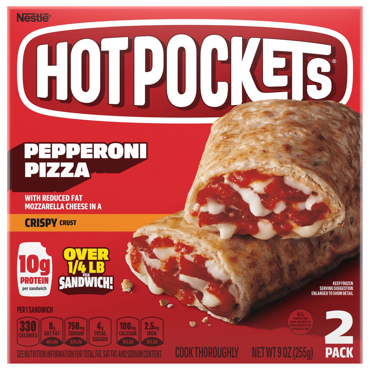 Hot Pockets Pepperoni Pizza Crispy Crust Frozen Snacks, Pizza Snacks Made with Mozzarella Cheese, 2 Count Frozen Sandwiches 2 ea