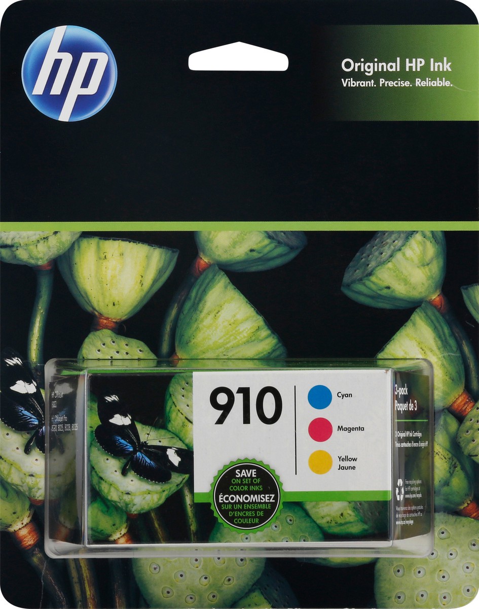 slide 3 of 4, HP 3-Pack 910 Cyan/Magenta/Yellow Jaune Original Ink Cartridges 1 ea, 1 ct
