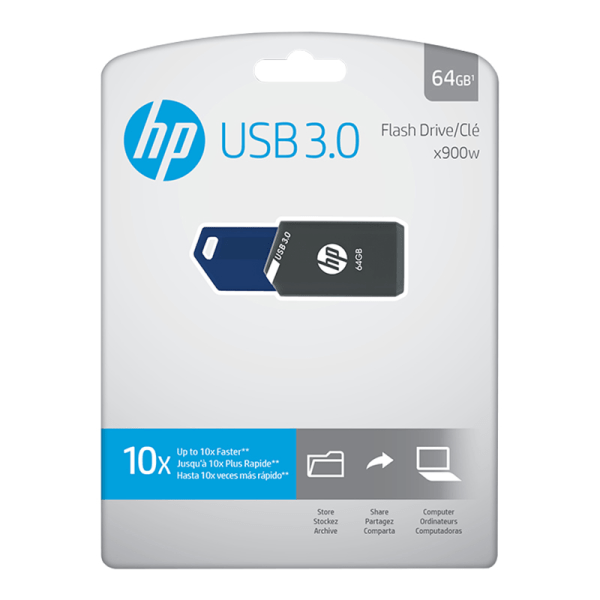 HP X900W Usb 3.0 Flash Drive, 64Gb, Gray/Blue, P-Fd64Ghp900-Ge
