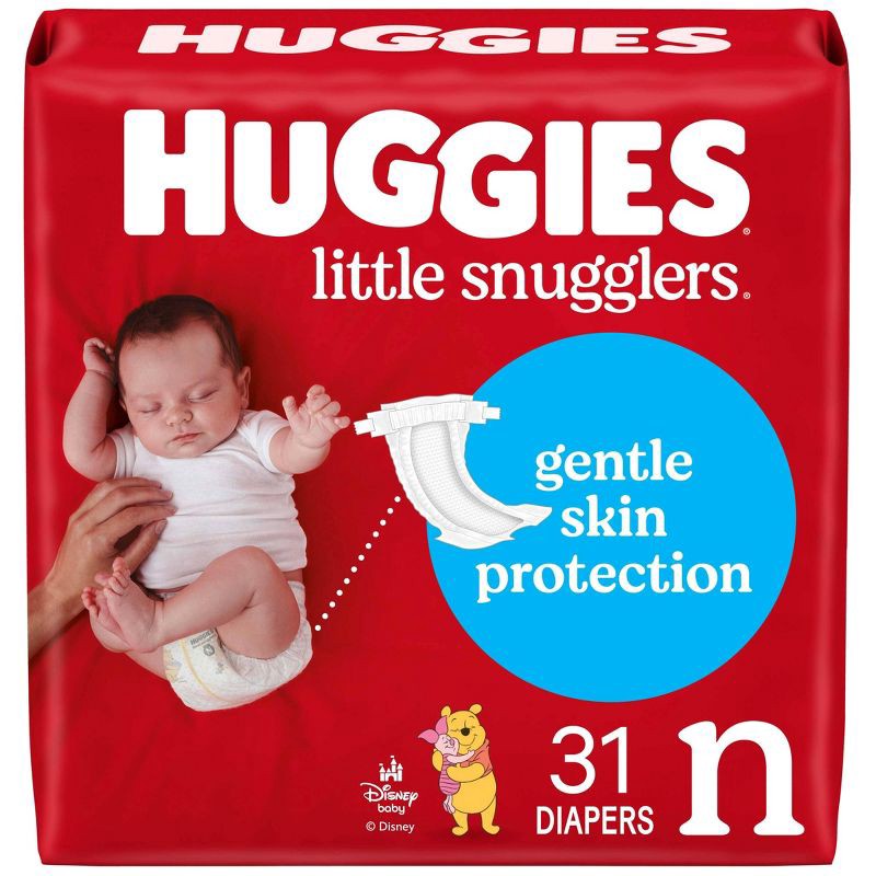 - Huggies Size Newborn Diapers: 31 Little Snugglers Baby Diapers (up to 10 lbs)