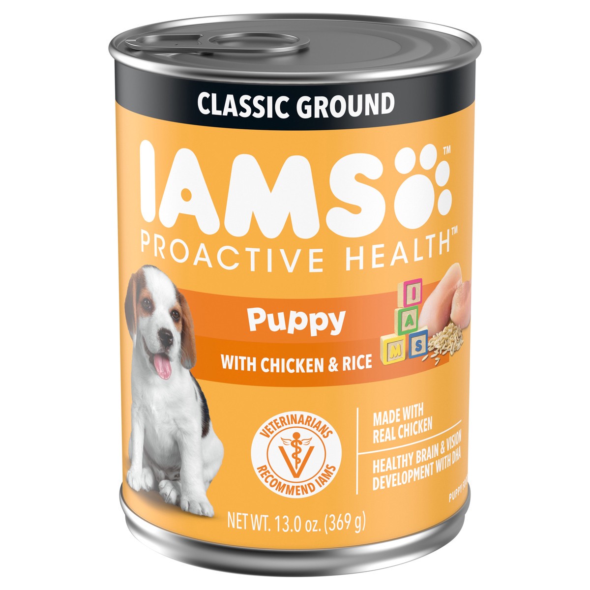 Calorie Content (Calculated): 1231 kcal ME/kg, 454 kcal ME/can. IAMS Proactive Health Puppy with Chicken & Rice Classic Ground Dog Food is formulated to meet the nutritional levels established by the …