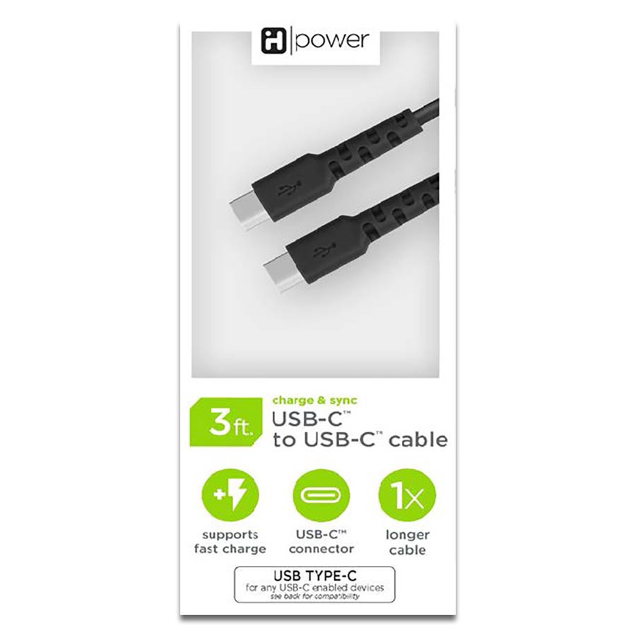 iHome USB-C to USB-C Charging Cable - Black, 3'