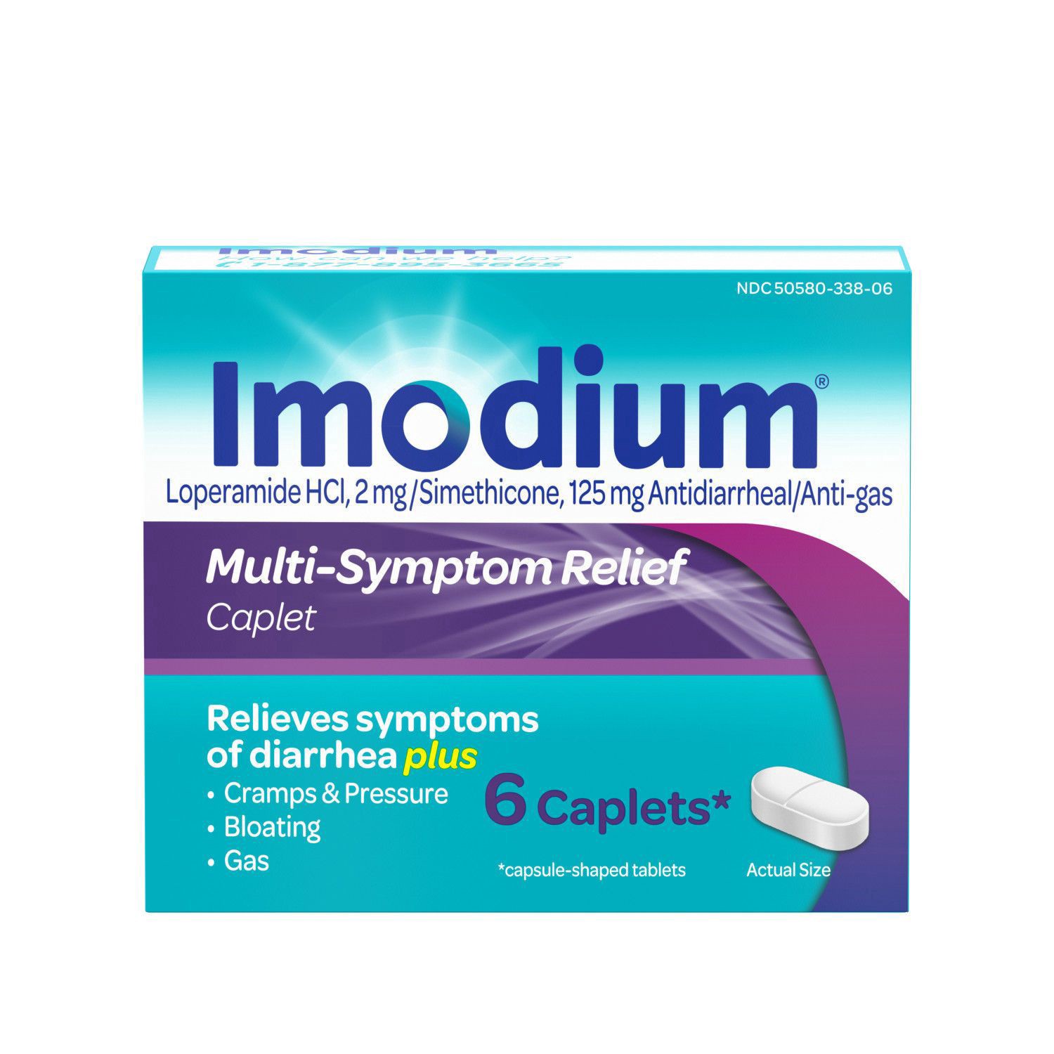 Imodium Multi-Symptom Relief Caplets are the only over-the-counter brand of anti-diarrheal medicine that combines two powerful medicines to relieve symptoms of diarrhea, as well as gas, cramps, pressu…