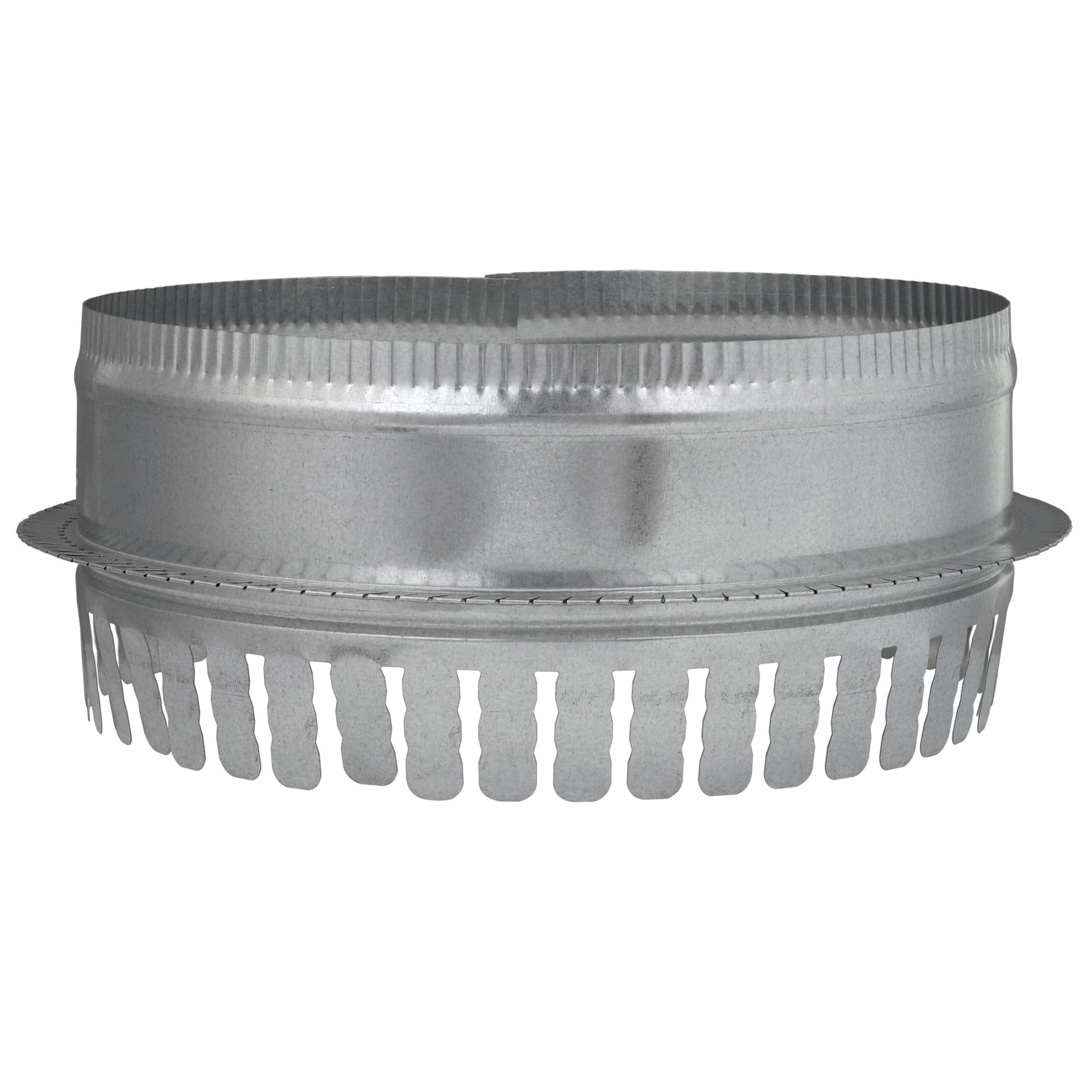Used to transition from a flat surface to round pipe or insulated flexible duct. For use with duct board, internally lined plenum, or unlined plenum. Features extra-long tabs to fit most R6 duct board…