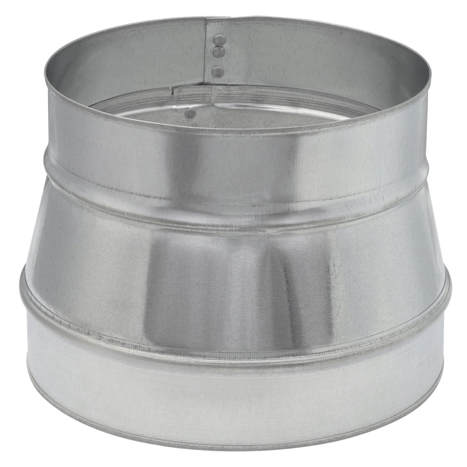 Reduces or increases the diameter of galvanized round pipe. Connects 7-in pipe to 7-in pipe in a run of round duct. Constructed from 30-gauge galvanized steel for durability and rust resistance. Featu…