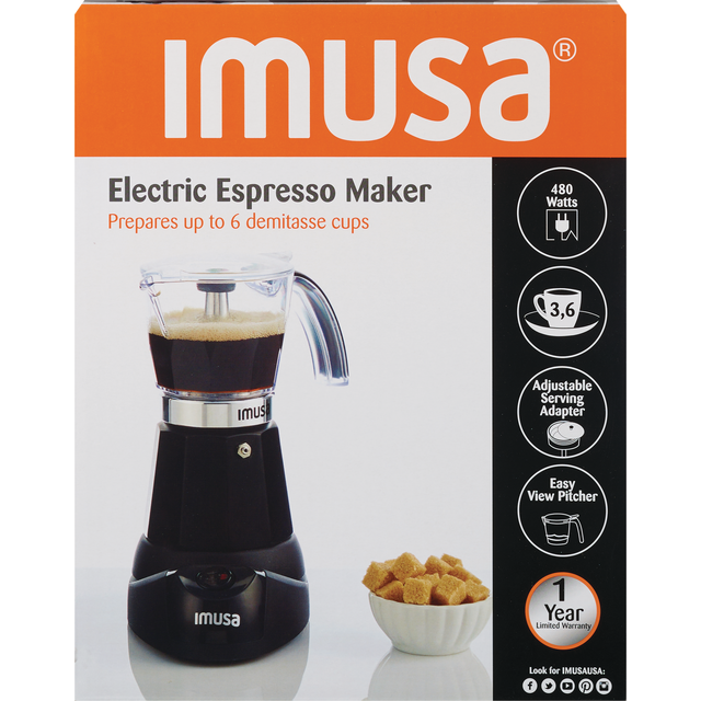 slide 1 of 1, Imusa 3/6 Cup Elect. Esprs. Black, 1 ct