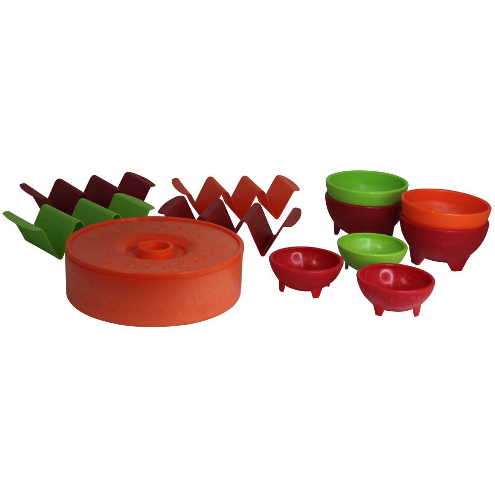 IMUSA 12pc Taco Fiesta Set (1 - 8" Tortilla Warmer (O), 3 - 4oz Color Salsa Dish (RG), 4 - 10oz Color Salsa Dish (ROG), 4 - Taco Holder Stand Set (ROG)). Used for soft and hard taco shells, tortillas,…