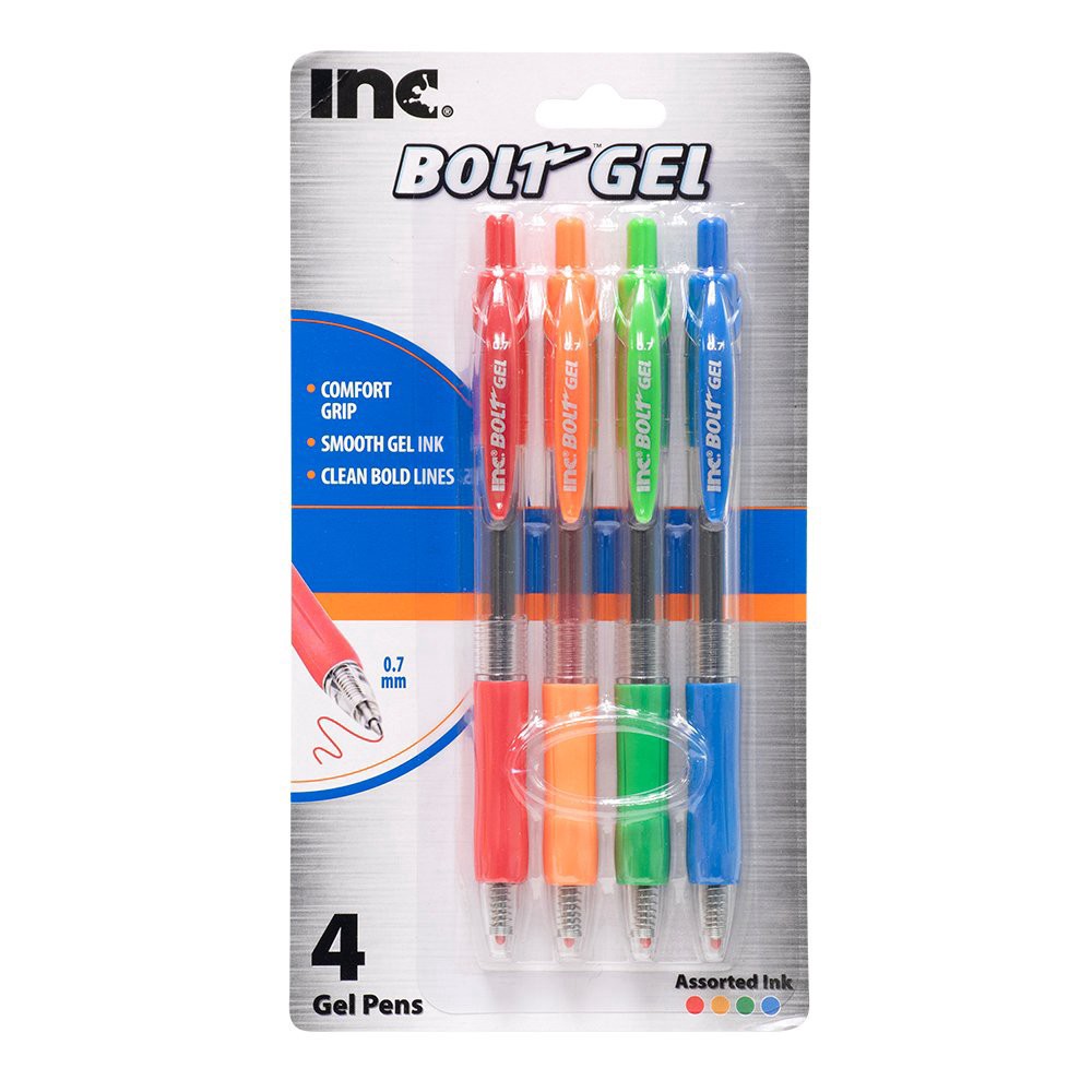 slide 1 of 1, Inc Bolt 0.7mm Retractable Gel Pens - Assorted Ink, 4 ct