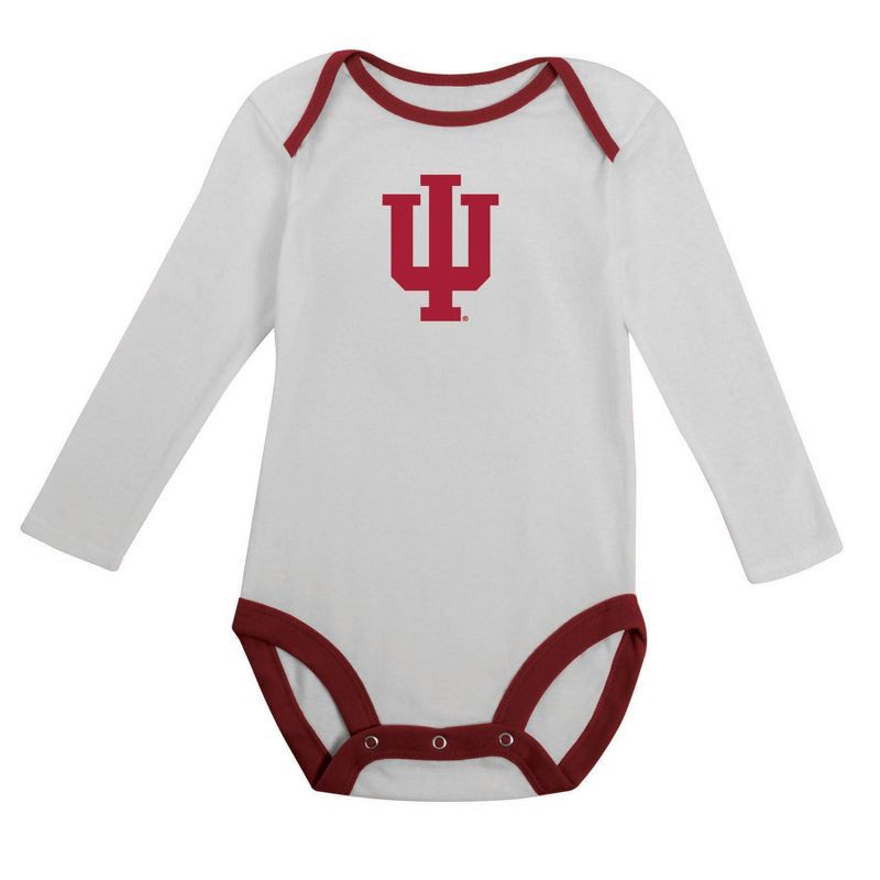 slide 3 of 5, NCAA Indiana Hoosiers Infant Boys' 2pk Long Sleeve Bodysuit - 6-9M, 2 ct