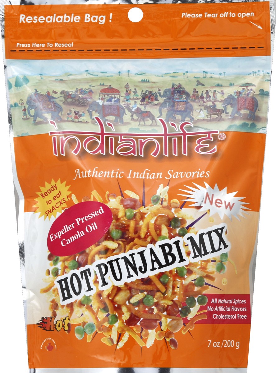 Authentic Indian savories. Ready to eat snacks. Expeller pressed canola oil. All natural spices. No artificial flavors. Cholesterol free. Hot Punjabi Mix is a delicious snack made with peanuts, chickp…
