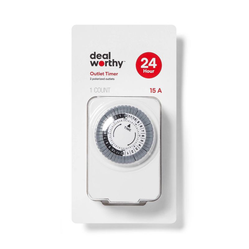 Indoor 2 Polarized Outlet Timer White - Dealworthy™: Light Timer for Indoor Use, 2 Outlets, 13 Amps, 1-Year Warranty