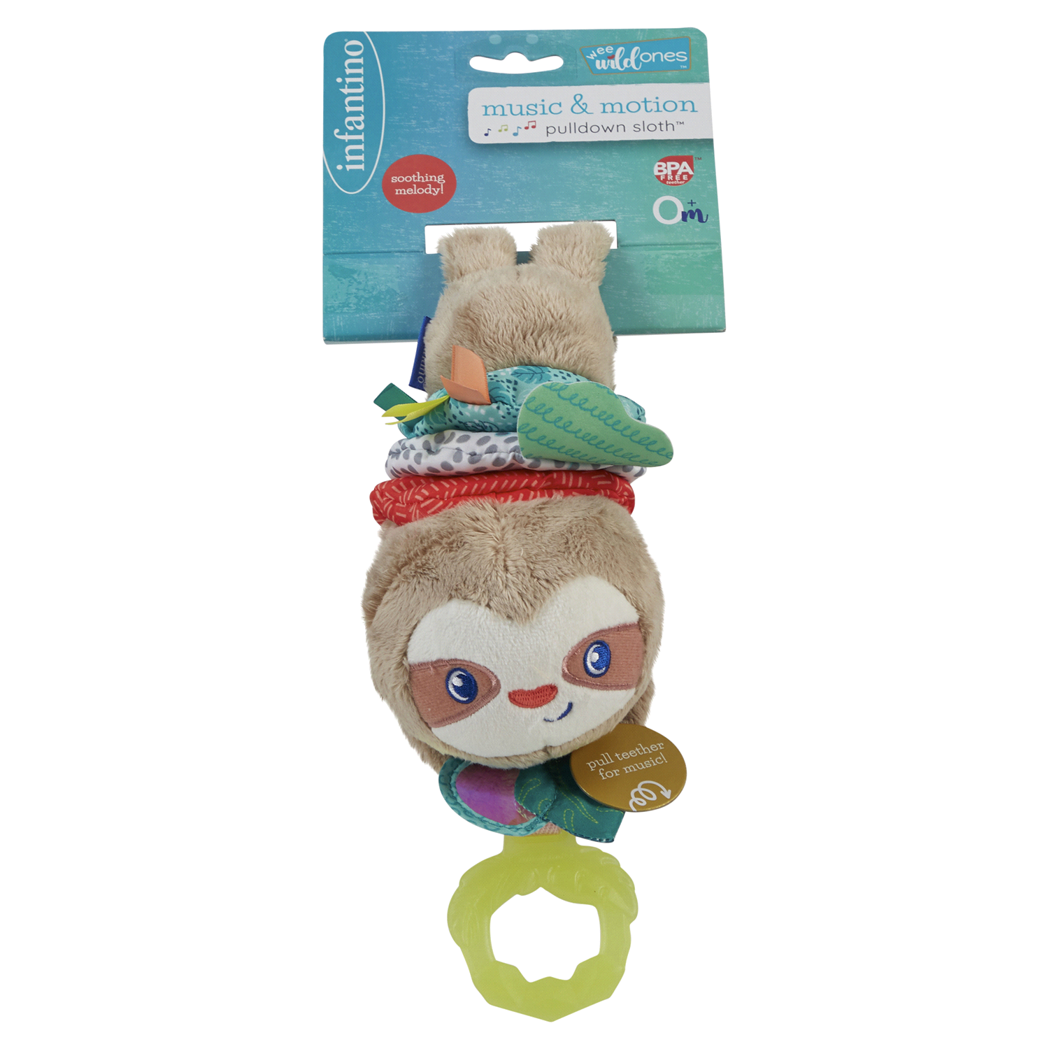 This huggable, tuggable musical sloth plays a sweet lullaby when you gently tug its arms. Perfect for entertaining little ones while out and about! Plays music for 90 seconds. Hang to encourage reachi…