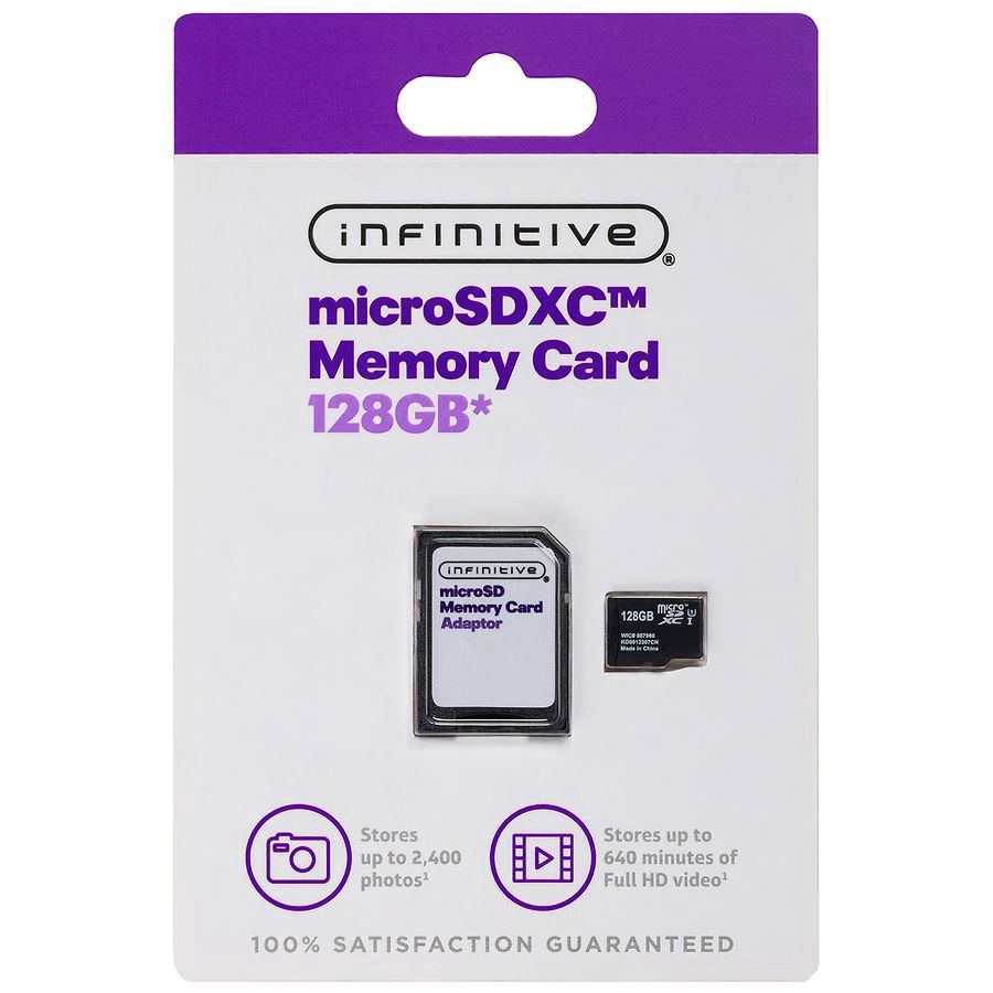 128 GB.* Stores up to 2,400 photos.** Stores up to 640 minutes of full HD video.** For smartphones, tablets, digital camera, PCs and Mac computers. Up to 100 MB/s transfer speed.*** Infinite MicroSDXC…