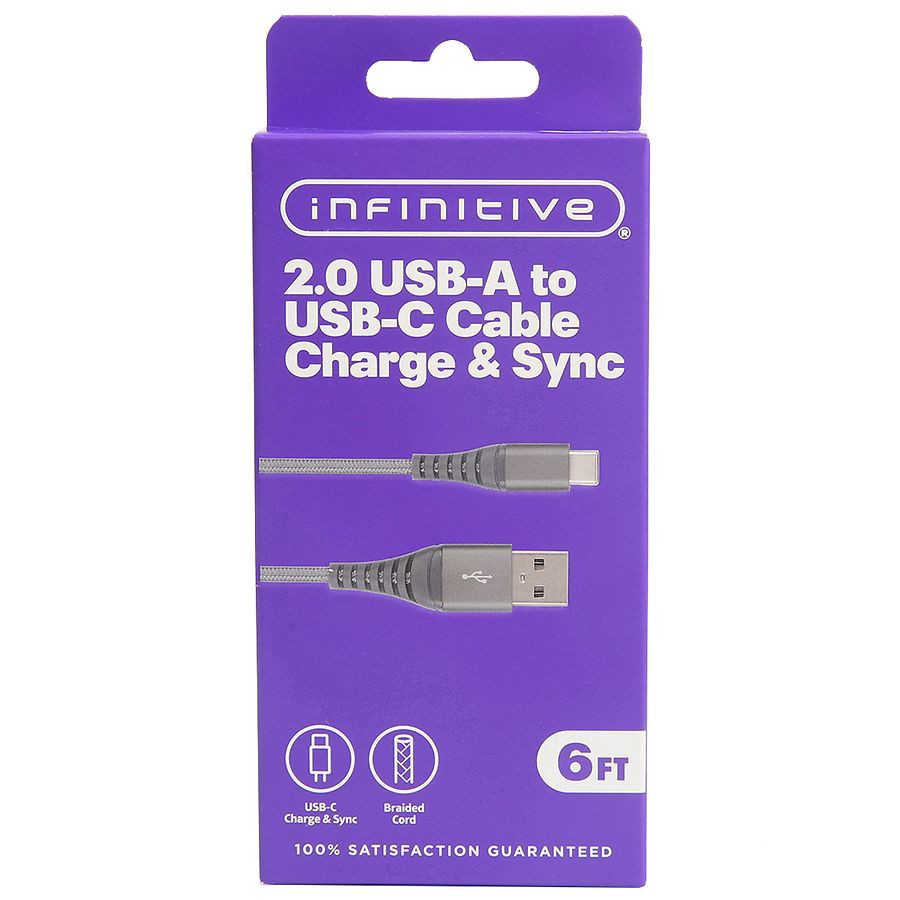 slide 2 of 3, Infinitive USB A to C Braided Cable Gray, 6 ft