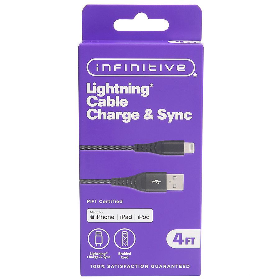 slide 2 of 3, Infinitive USB-A To Lightning Braided Cable Black, 4 ft 1 ct