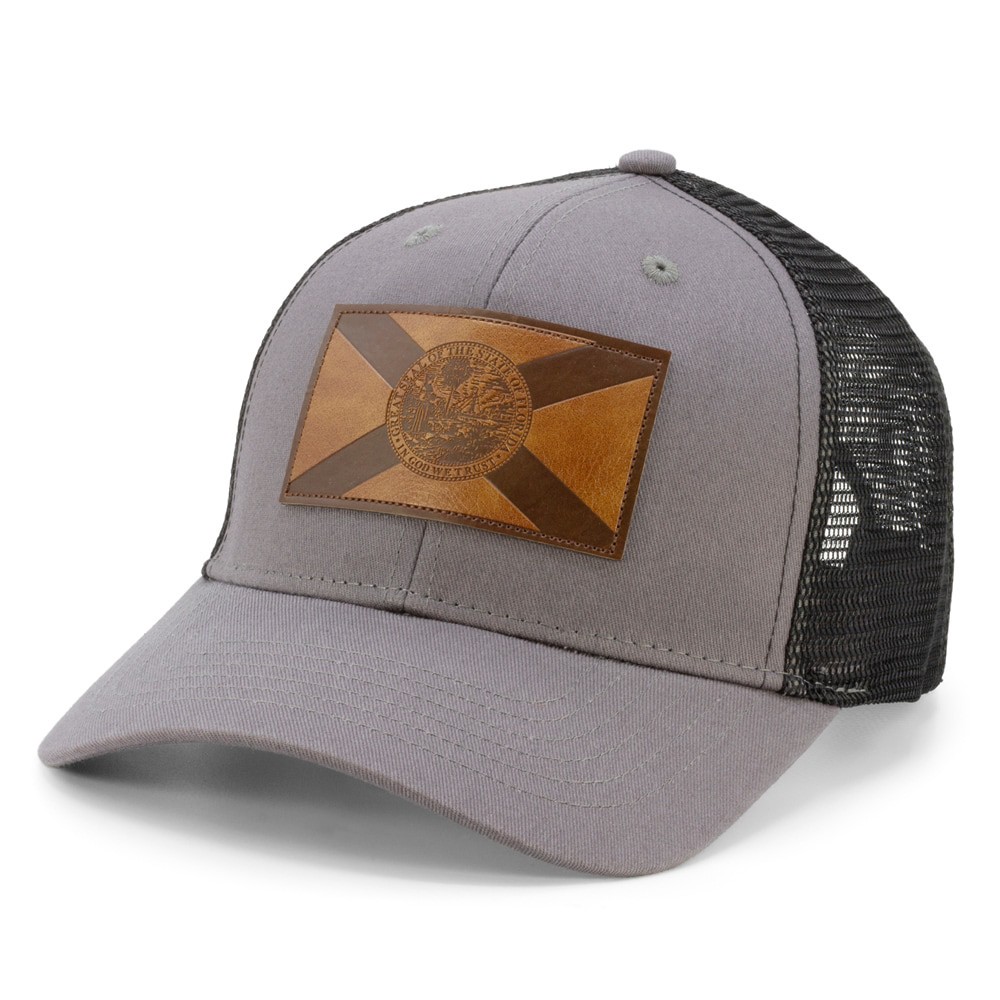 Show your state pride with this classic charcoal mesh back cap with an embossed leather flag patch front logo and a full color flag woven loop label on the back closure.. This cap is made with high qu…