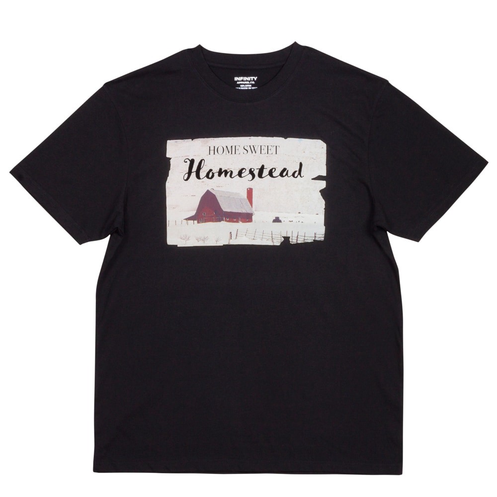Celebrate cozy country vibes with this T-shirt featuring "Home Sweet Homestead" and a charming winter barn graphic.. Made with 100% cotton, this T-shirt is soft, comfortable, and will be your new favo…