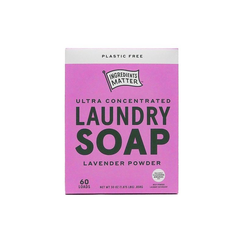 Ingredients Matter Laundry Soap powder is made simply with a plant-based blend of soaps and salts, and packaged in a super convenient, 100% plastic-free, easy-pour cardboard box. Our Lavender scent is…