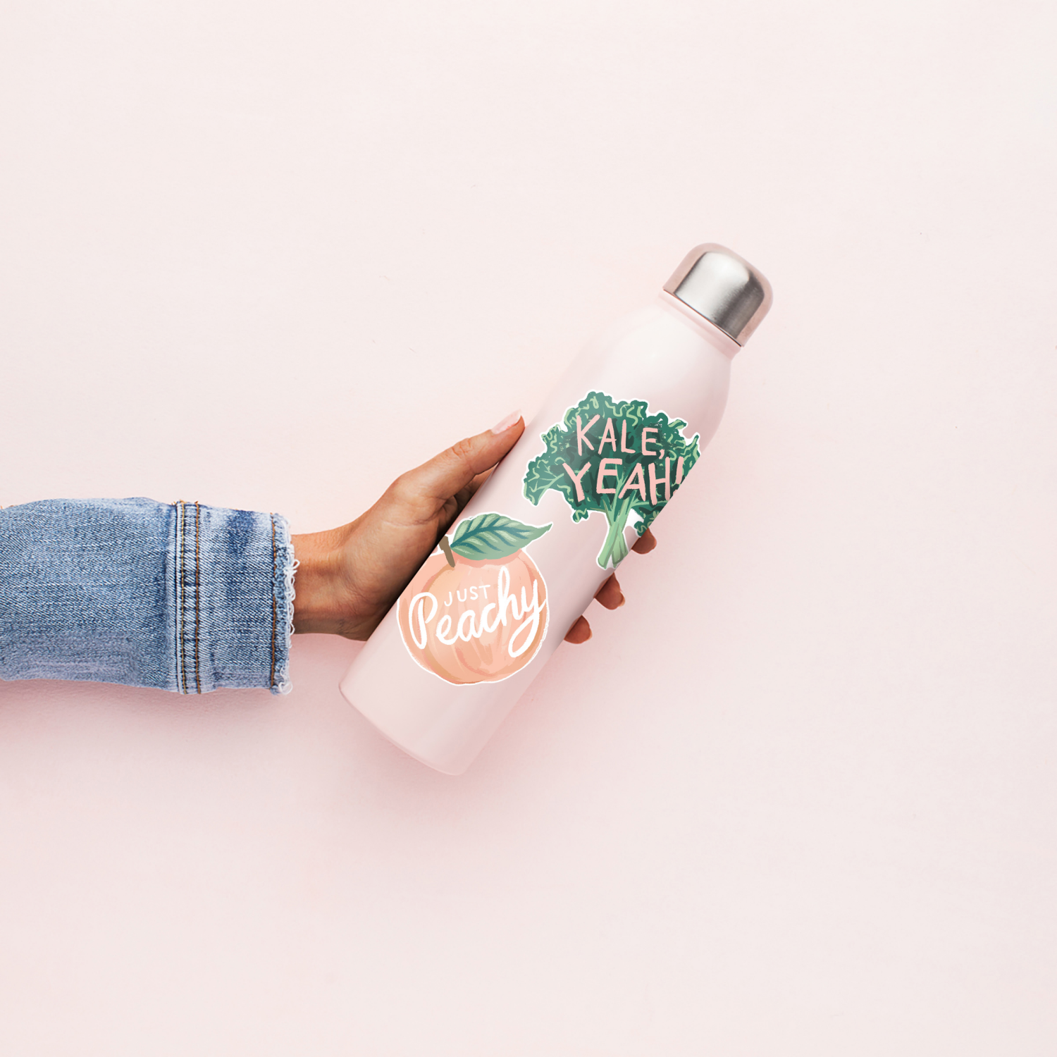 This set of two waterproof and dishwasher-safe vinyl stickers are perfect for decorating water bottles, travel mugs, tech cases, laptops, and more. Peel and stick to any smooth, hard surface.