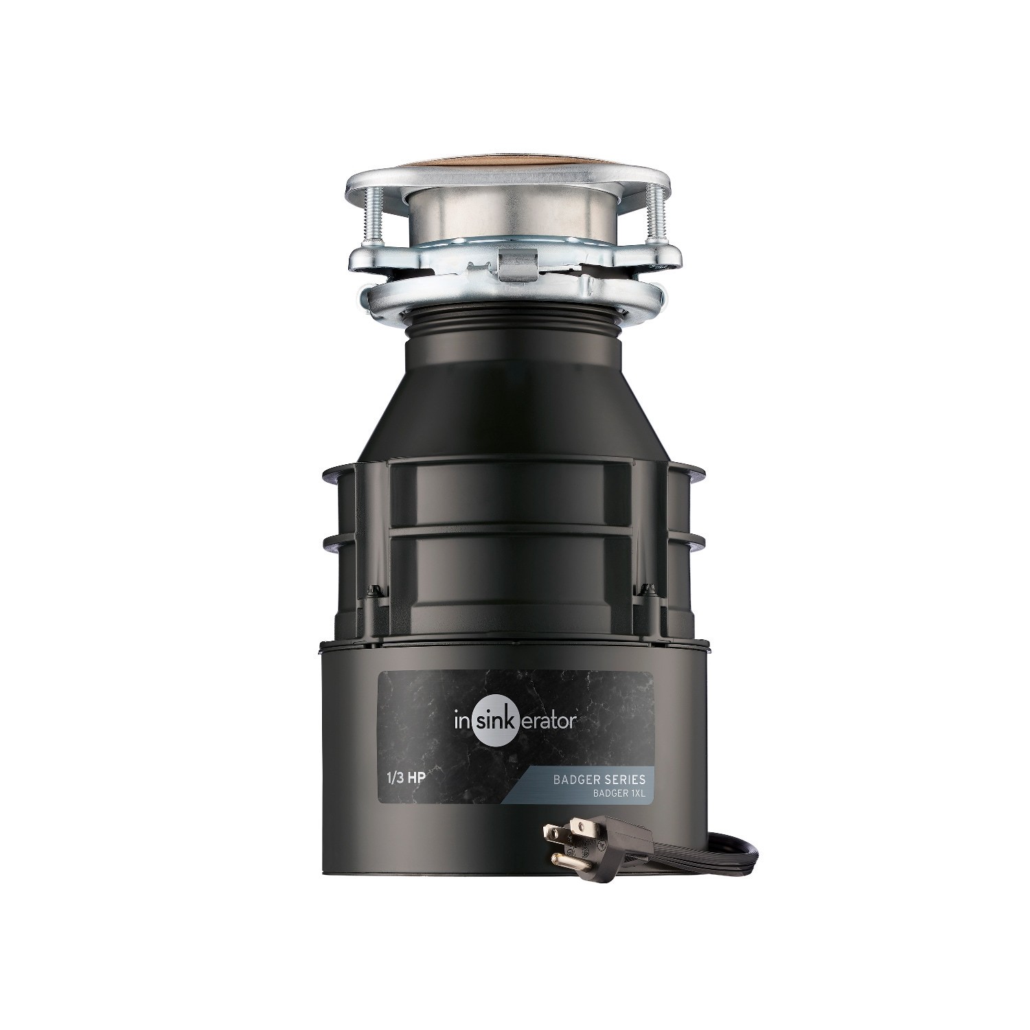 11.5-inch T by 6.31-inch W Badger 1XL W/C garbage disposal with flanges, gaskets, bolts, etc., for install, plus jam-buster wrench and drain stopper. Durable, long-lasting, sink disposal with 1/3 HP D…