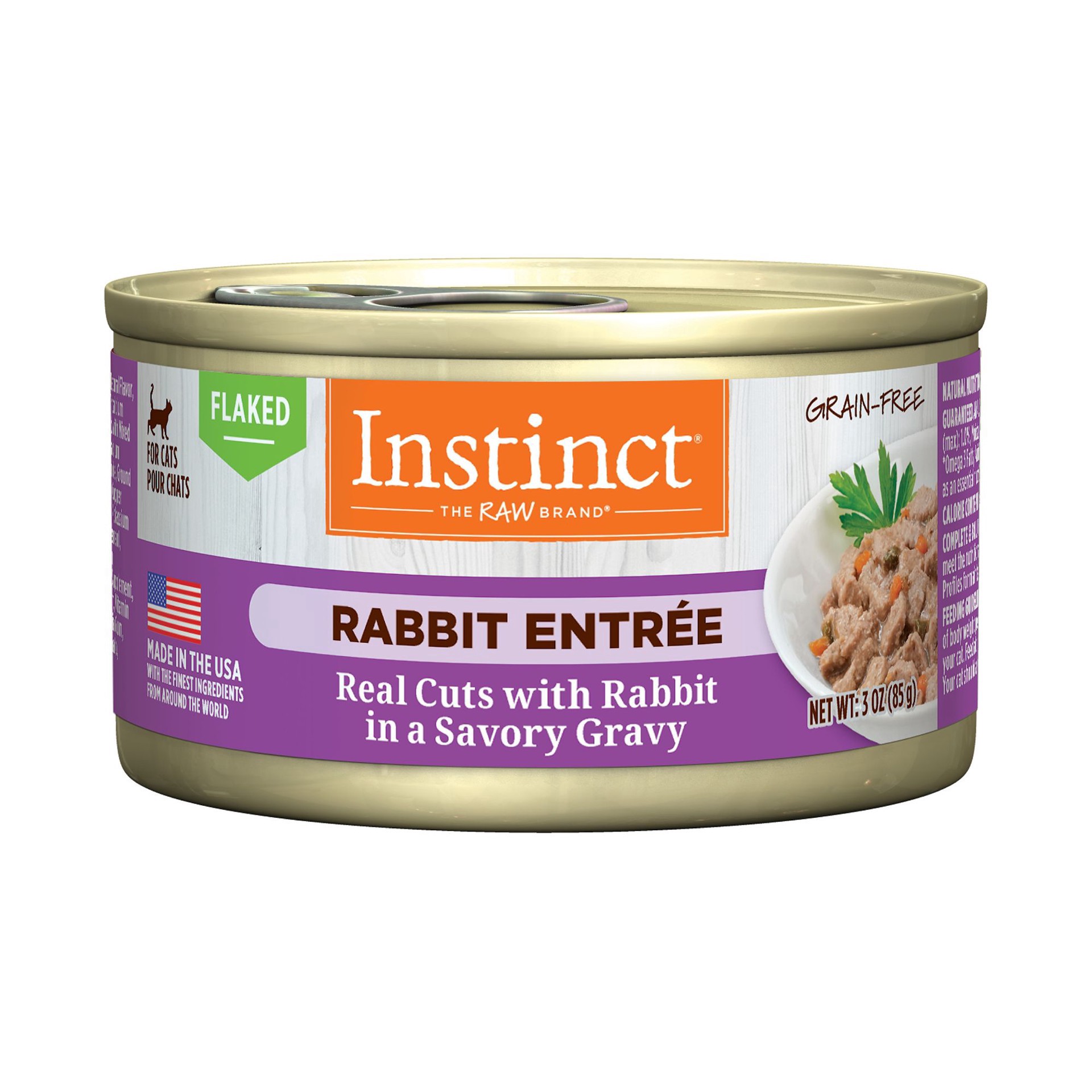 Pork Broth, Rabbit, Pork Liver, Natural Flavor, Egg Product, Spinach, Carrots, Dried Ground Peas, Tricalcium Phosphate, Guar Gum, Menhaden Fish Oil (preserved with Mixed Tocopherols), Sunflower Oil, M…