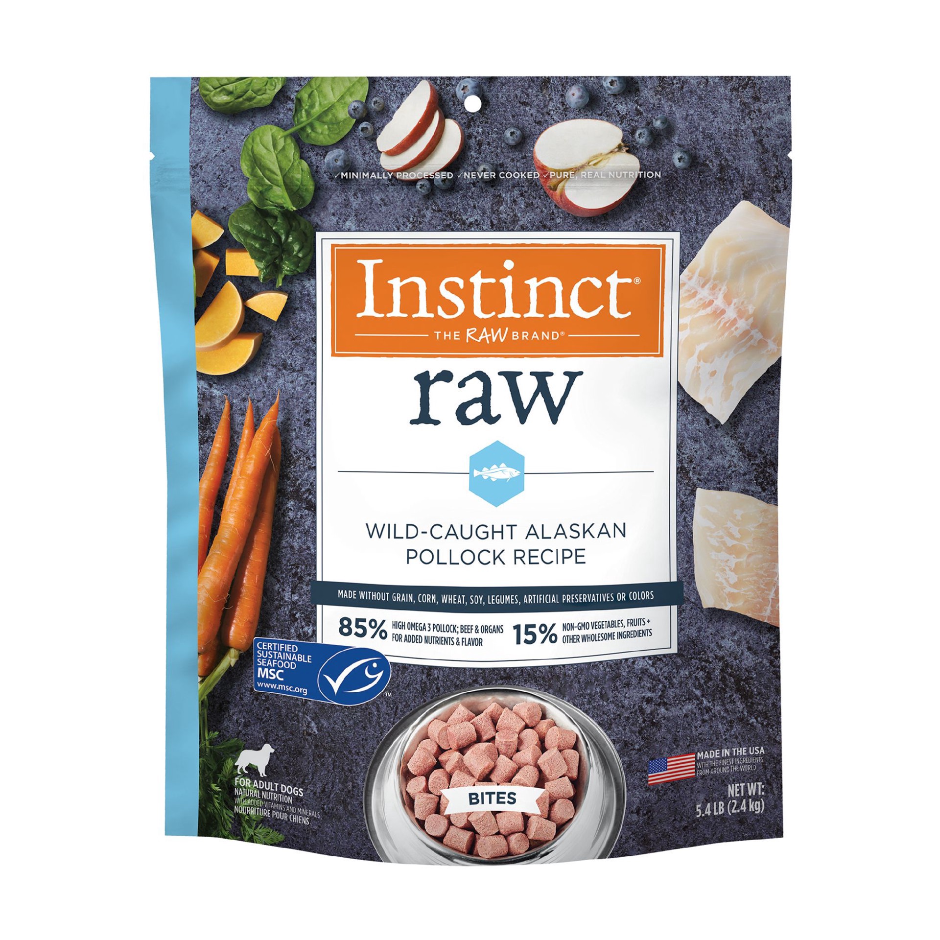 Pollock, Beef Kidney, Beef Spleen, Beef Liver, Beef Heart, Beef, Carrots, Apples, Butternut Squash, Pumpkinseeds, Ground Miscanthus Grass, Montmorillonite Clay, Salmon Oil, Tricalcium Phosphate, Vitam…