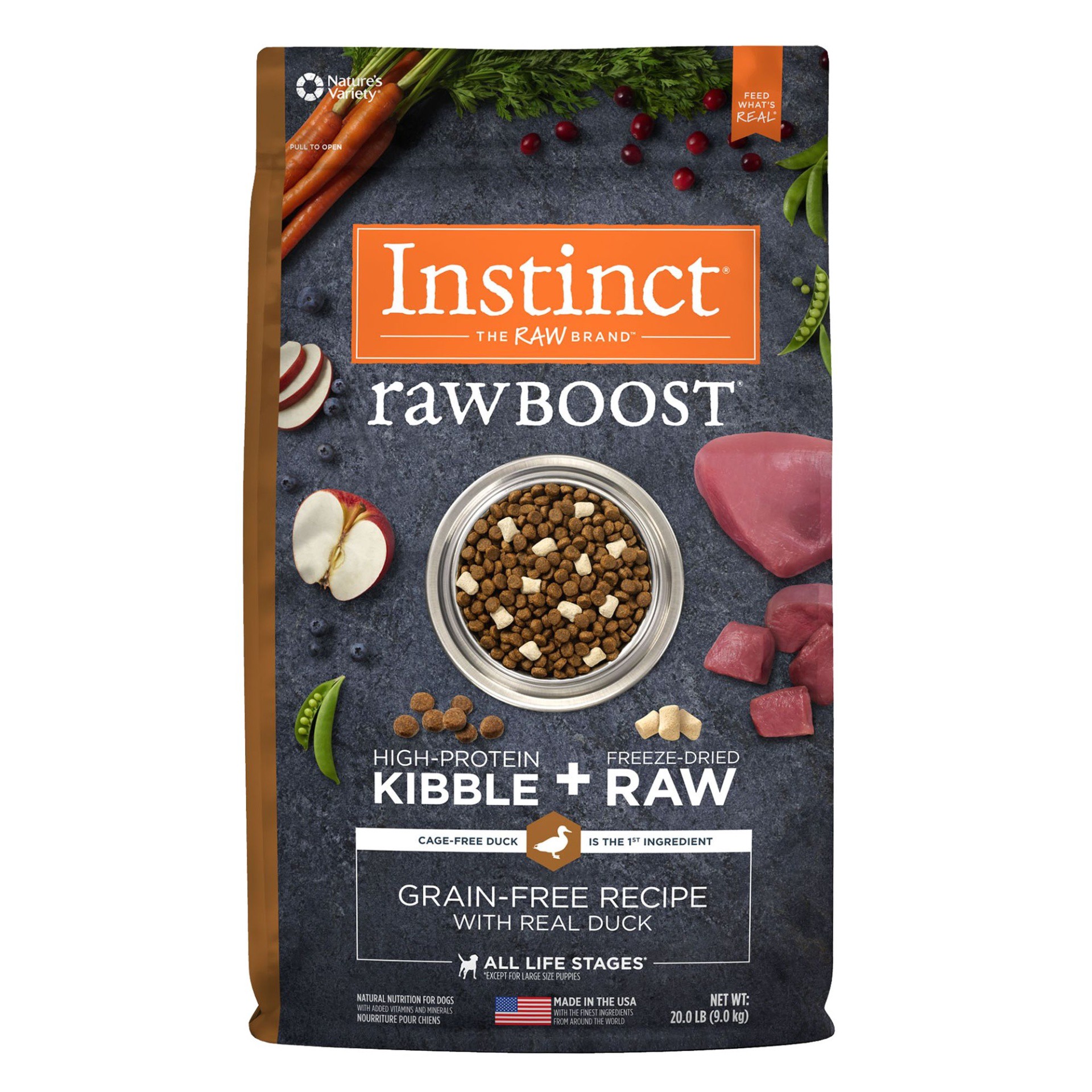 High animal-protein, grain-free, boosted nutrition with bites of freeze-dried raw meat, Instinct Raw Boost Grain-Free Recipe with Real Duck is a better way to feed kibble. Unlock your dog's potential …