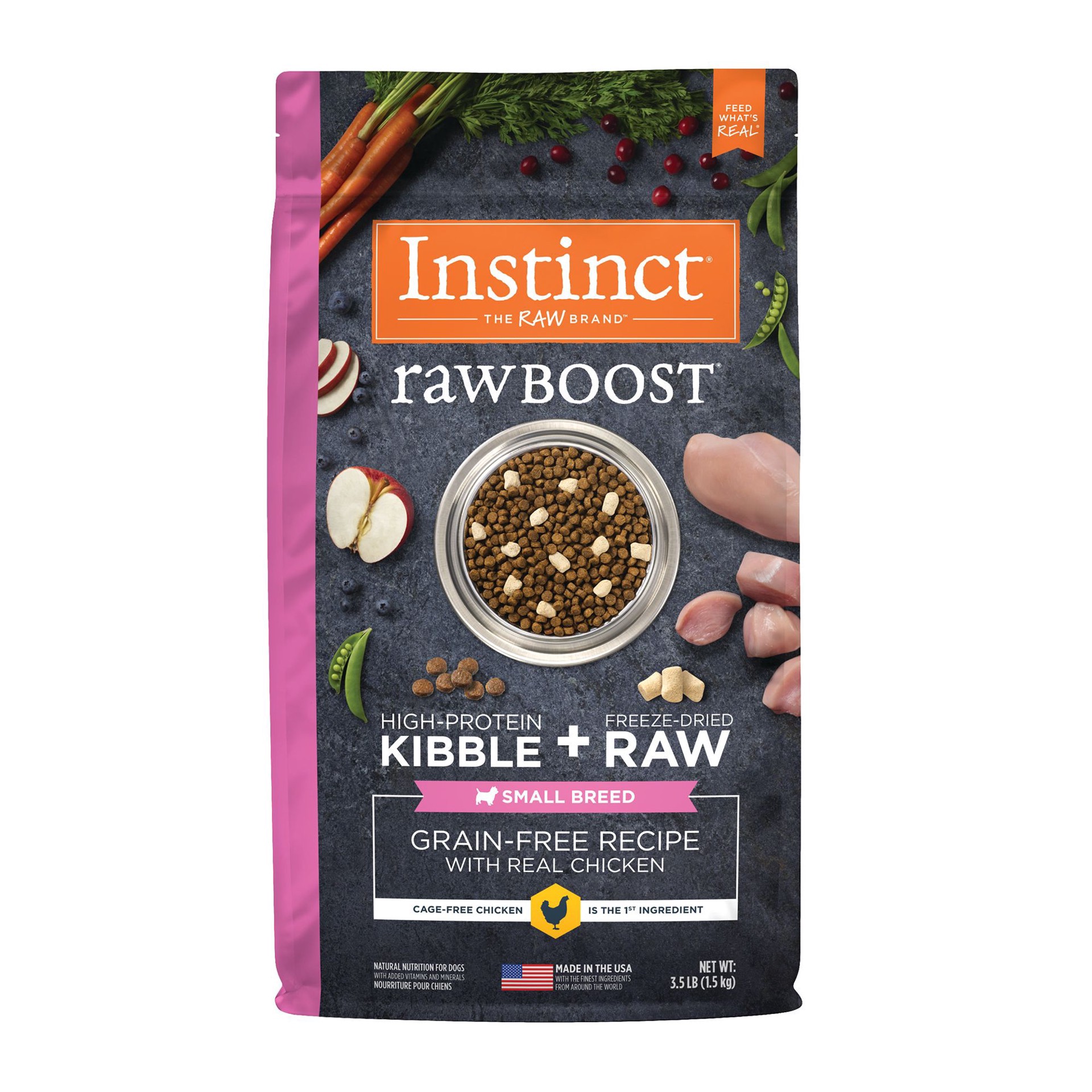 Chicken, Chicken Meal, Peas, Chicken Fat (preserved with Mixed Tocopherols), Tapioca, Sweet Potatoes, Fish Meal, Turkey Meal, Freeze-Dried Chicken, Chickpeas, Dried Tomato Pomace, Natural Flavor, Grou…