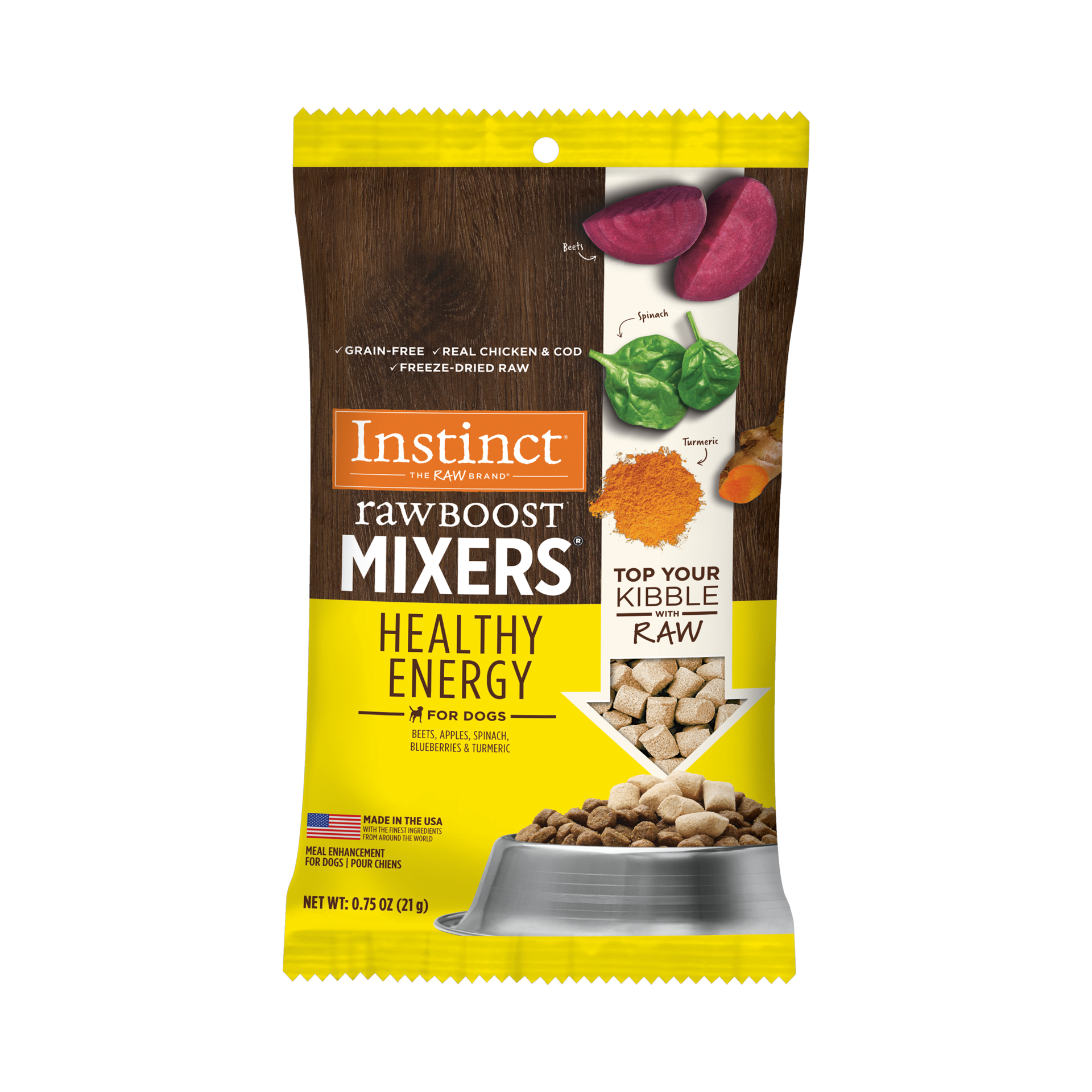 Top your dog's kibble with raw. Instinct Raw Boost Mixers Healthy Energy contains nutrients that support pet's vitality, replenish energy and fuel daily activity - turmeric for healthy mobility, vineg…